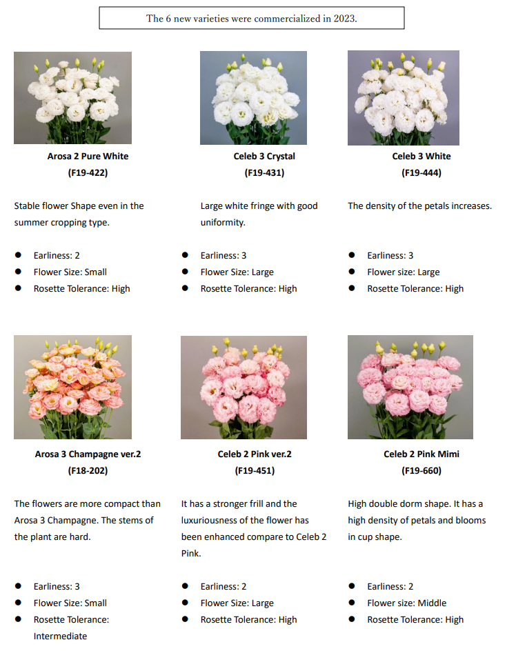 The 6 new varieties were commercialized in 2023.