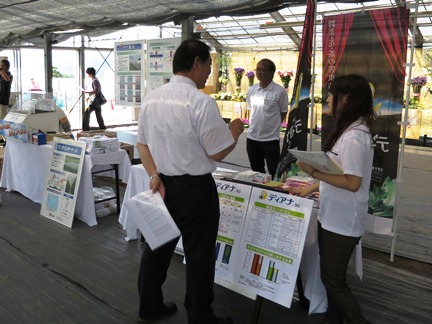 「トルコキキョウ専用一発肥料」や「スミサンスイ®」「ミストエース」などの各種潅水チューブ、殺虫剤「ディアナ®SC」(住友化学株式会社)、 温度感応可逆性フィルム「調光®」(サンテーラ株式会社)の製品説明も実施し、様々なご質問にお答えしました。