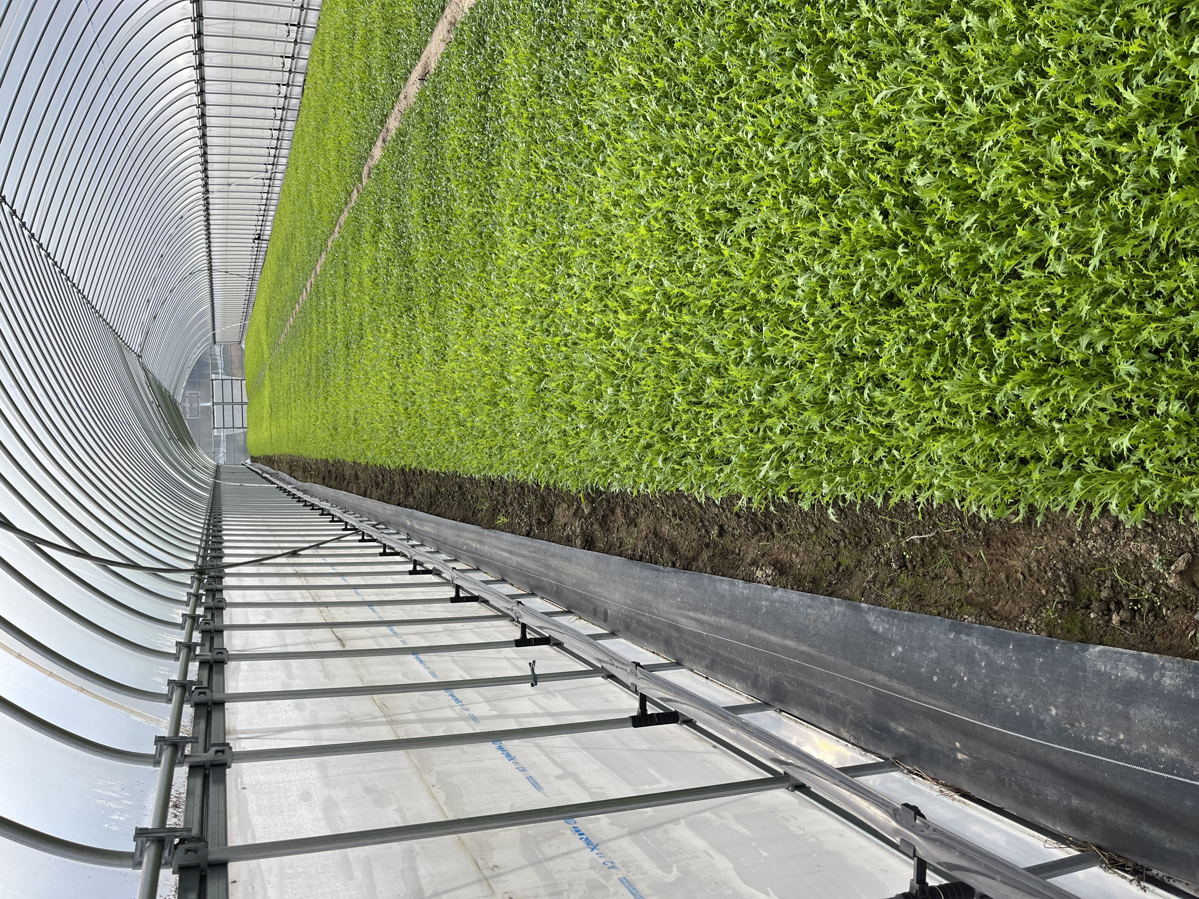 東広島農場のビニールハウス全棟に、弊社潅水チューブ「ミストエースS54」を導入いただいております。