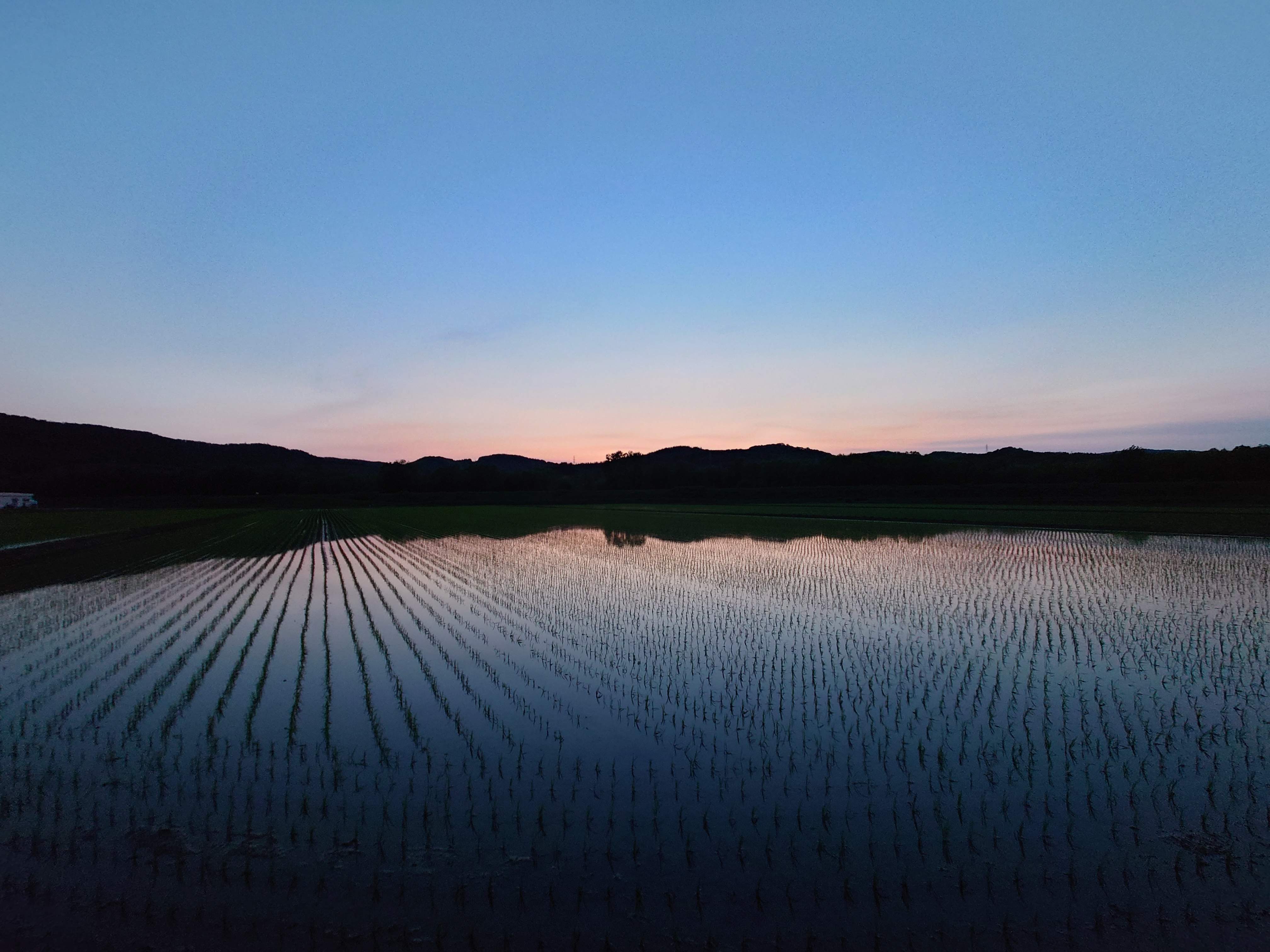 【田植え後の夕景】